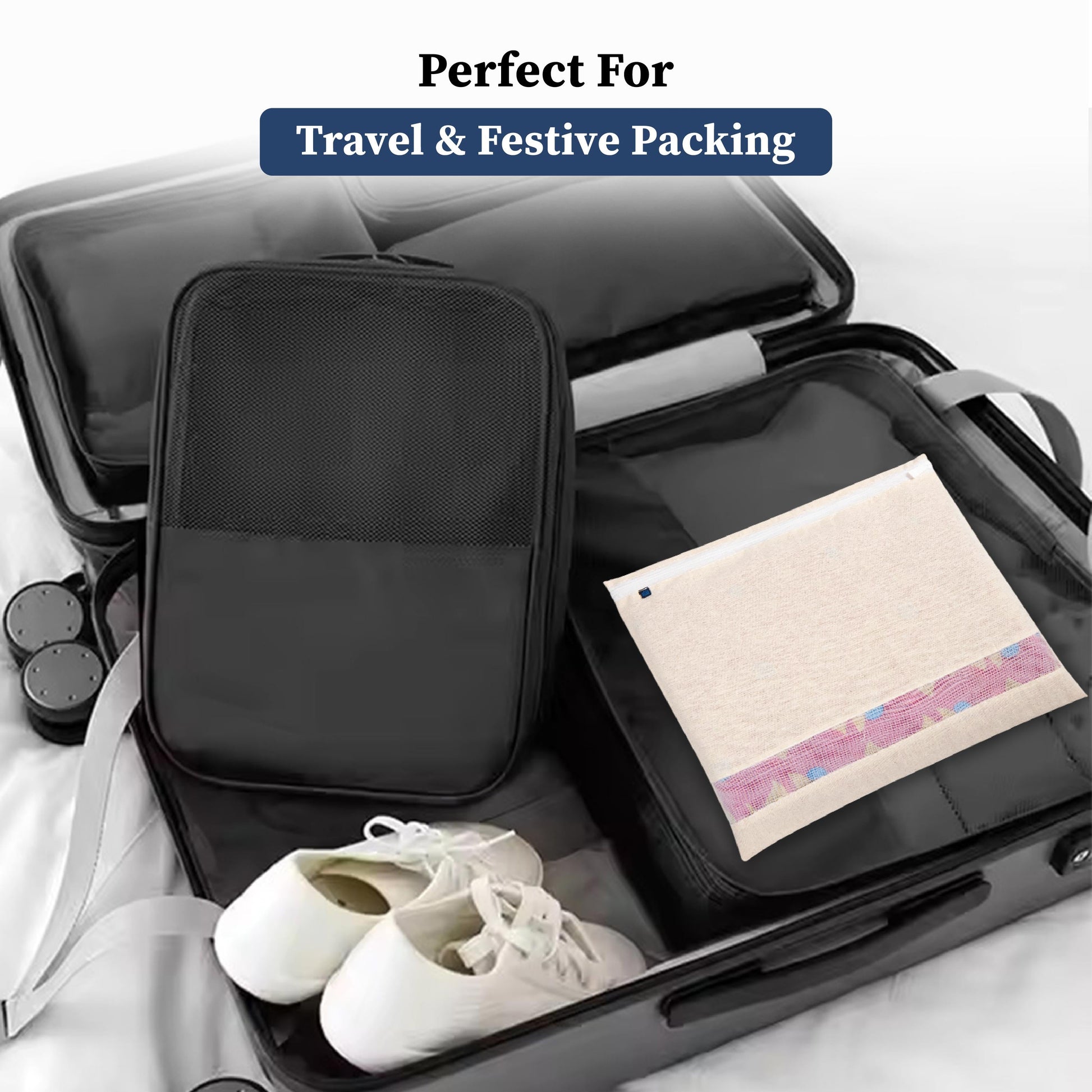 Made from breathable cotton that protects Banarasi, Kanjivaram & silk sarees from dust and moisture — keeps zari shining and fabric fresh for years.